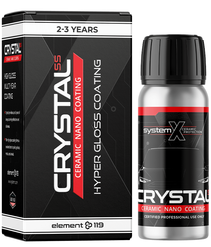 2-3 Year Coating – Entry level automotive protection. System X Crystal SS™ is a 2-3 year non-warrantied ceramic coating offering great gloss and semi-permanent self-cleaning properties. System X Crystal ceramic coating is a professional-grade coating offering superior semi-permanent gloss and protection. Crystal interlocks part of its molecular structure with the surface molecules of your paintwork so you get a coating that will not wash off like a wax or sealant. Crystal has passed rigorous Boeing approval testing which ensures 100% safety for paint. Utilizing our proprietary ceramic technology, Crystal is a high performer against friction, heat, and solvent. Crystal SS coatings report to Carfax when registered online.